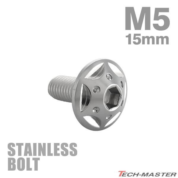 ステンレスボルト M5×15mm P0.8 ボタンボルト スターホールヘッド シルバーカラー TR0215