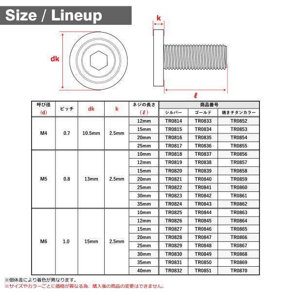 ステンレスボルト M5×15mm P0.8 マットタイプ シェルヘッド フラット ゴールドカラー TR0839
