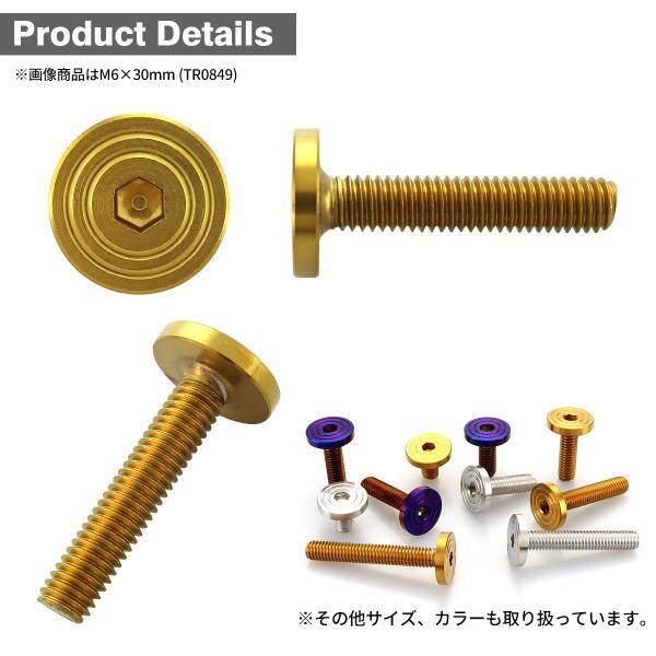 ステンレスボルト M6×25mm P1.0 マットタイプ シェルヘッド フラット ゴールドカラー TR0848