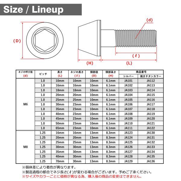 チタンボルト M8×16mm P1.25 テーパーヘッド 六角穴付き キャップボルト シルバーカラー JA123