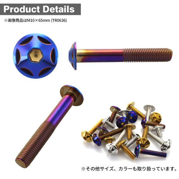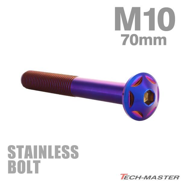 ステンレスボルト M10×70mm P1.25 ボタンボルト スターヘッド 焼きチタンカラー TR0637
