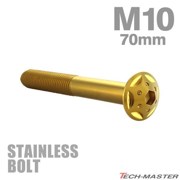 ステンレスボルト M10×70mm P1.25 ボタンボルト スターホールヘッド ゴールドカラー TR0702