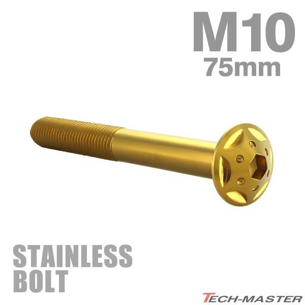 ステンレスボルト M10×75mm P1.25 ボタンボルト スターホールヘッド ゴールドカラー TR0703