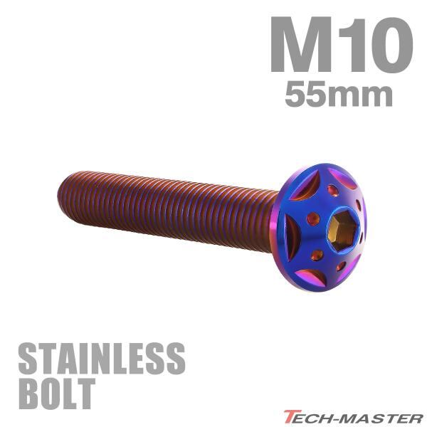 ステンレスボルト M10×55mm P1.25 ボタンボルト スターホールヘッド 焼きチタンカラー TR0712