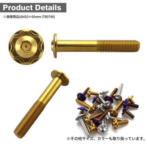 ステンレスボルト M10×60mm P1.25 ボタンボルト スノーヘッド ゴールドカラー TR0739