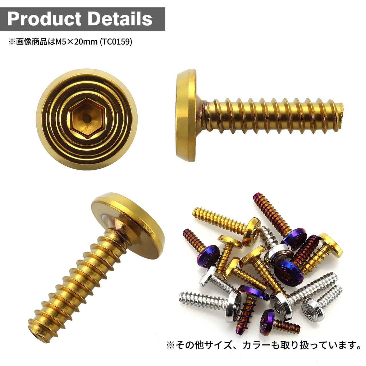 ステンレスネジ M5×16mm タッピングビス 六角穴 フラットシェルヘッド ゴールドカラー 1個 TC0158