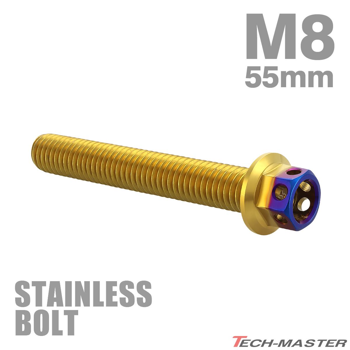 ステンレスボルト M8×55mm P1.25 ヘキサゴンヘッド 六角ボルト ゴールド×焼きチタンカラー TB0814