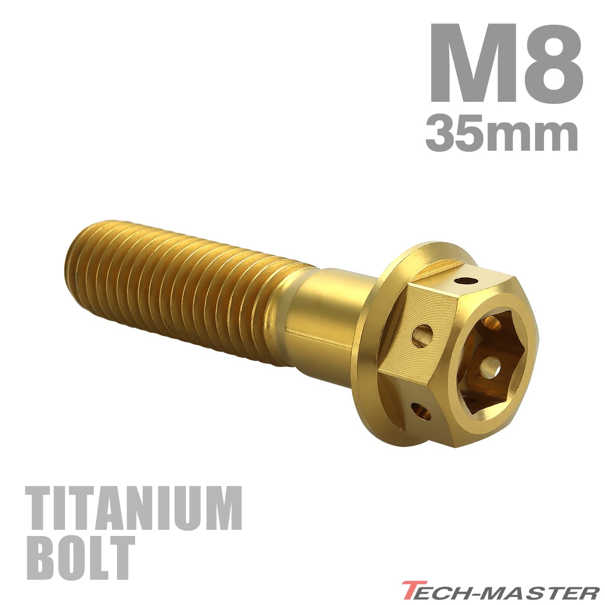 チタンボルト M8×35mm P1.25 六角ボルト フランジ付き キャップボルト ゴールドカラー 1個 JA1787