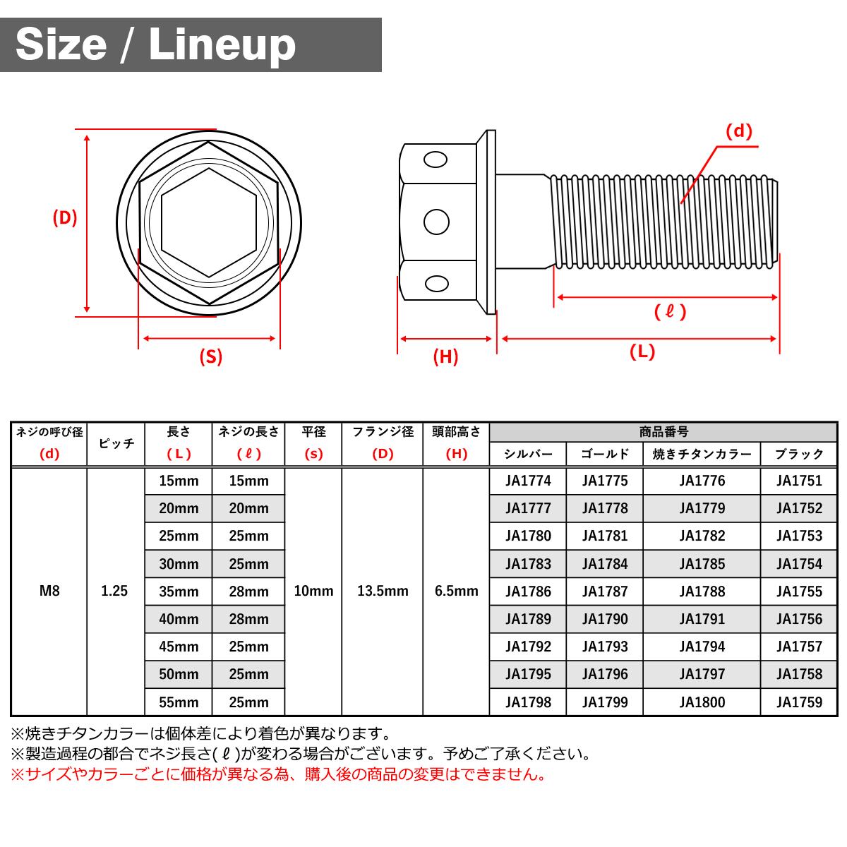 チタンボルト M8×55mm P1.25 六角ボルト フランジ付き キャップボルト ブラック 1個 JA1759