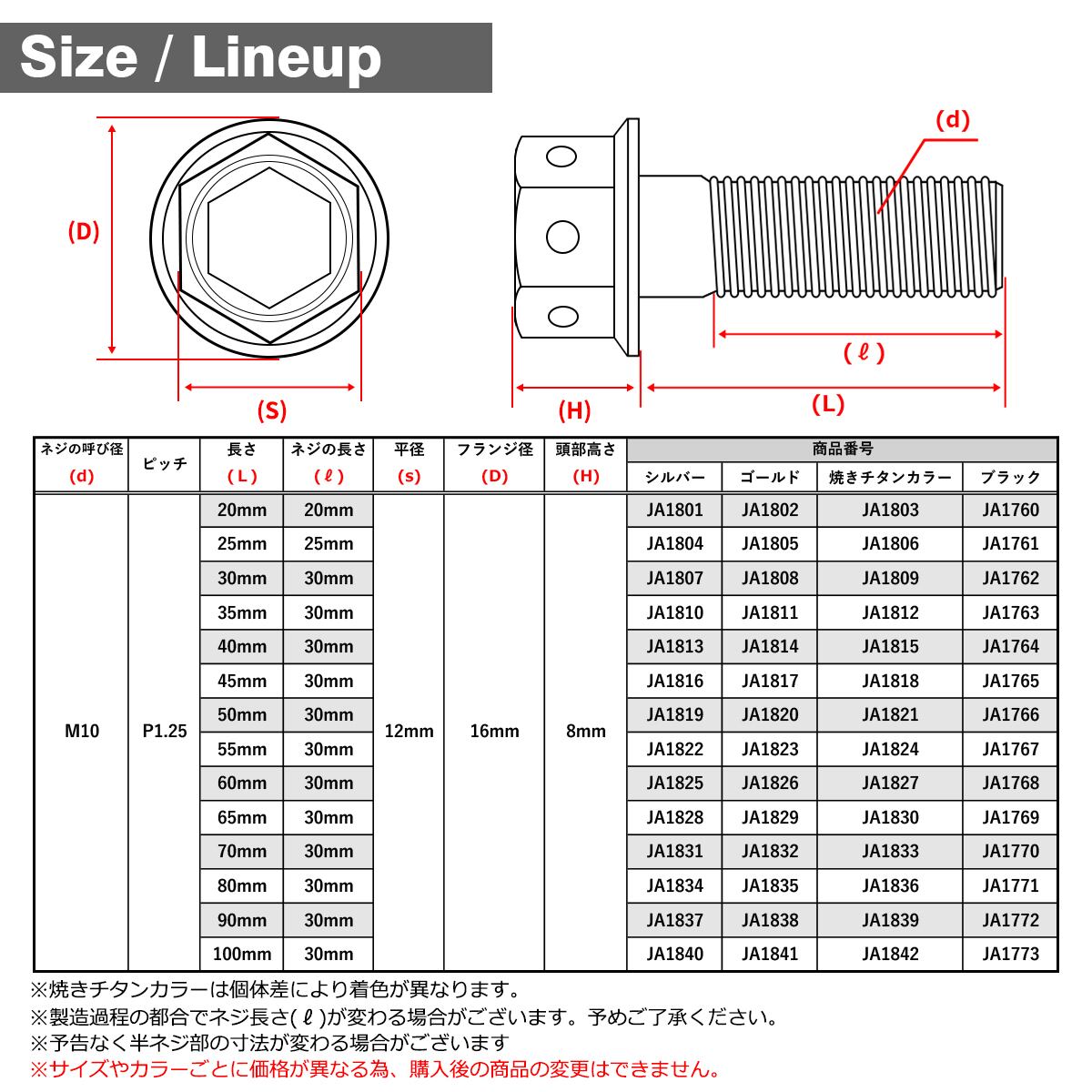 チタンボルト M10×60mm P1.25 六角ボルト フランジ付き キャップボルト ゴールドカラー 1個 JA1826