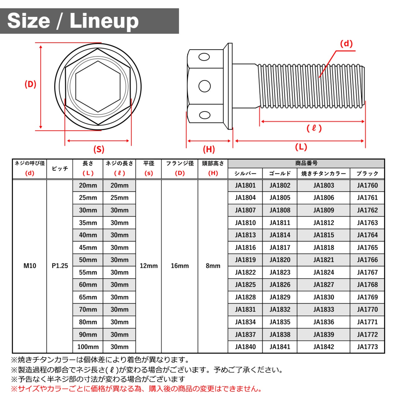 ※サイズやカラーごとに価格が異なる為、購入後の商品の変更はできません。