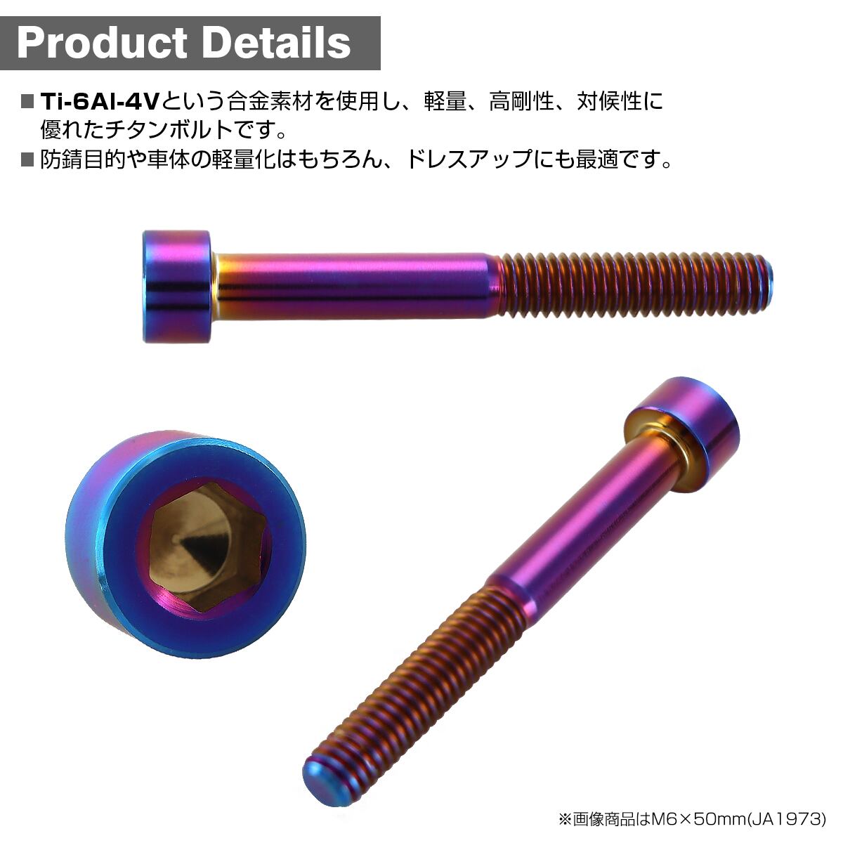 M6×45mm P1.0 64チタン合金 スリムヘッド キャップボルト 六角穴付き 焼きチタンカラー 1個 JA1967