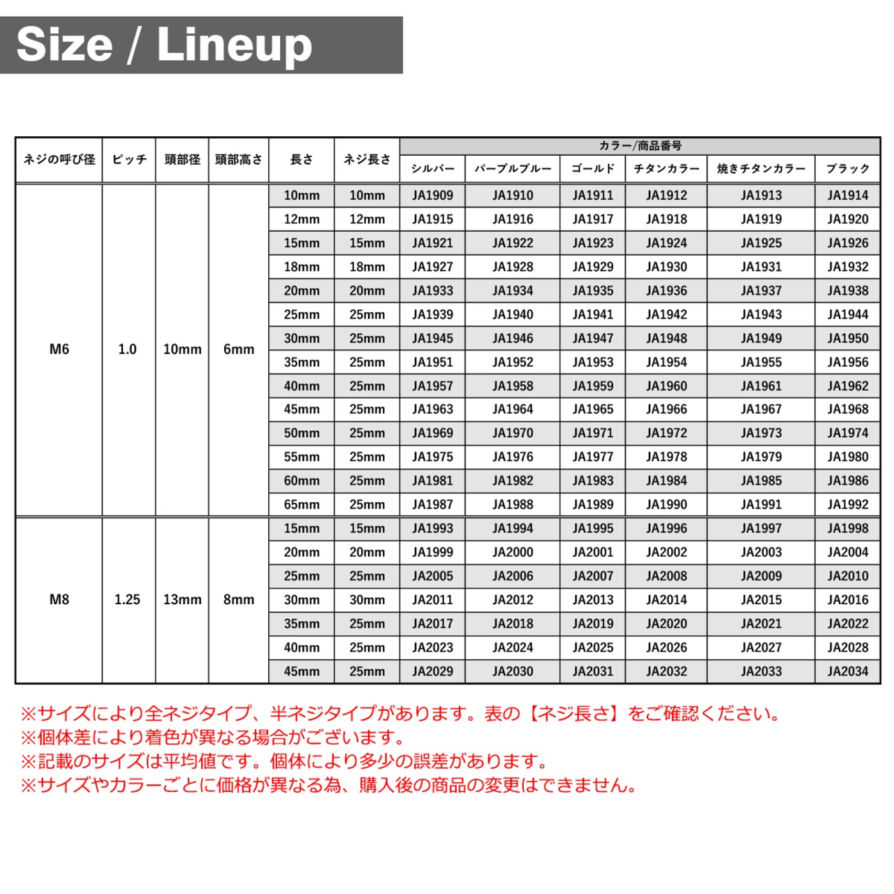 ※サイズやカラーごとに価格が異なる為、購入後の商品の変更はできません。