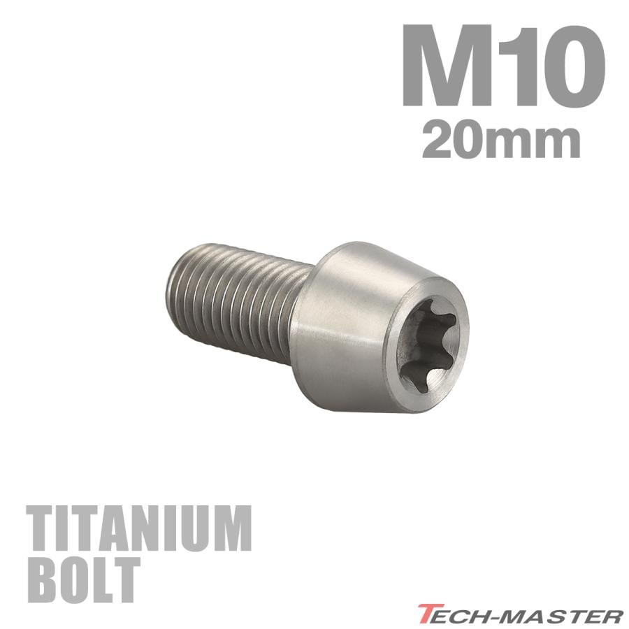 64チタンボルト M10×20mm P1.25 テーパーヘッド トルクス穴付き キャップボルト シルバーカラー 素地 1個 JA381