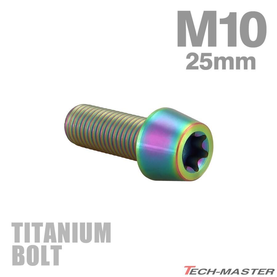 64チタンボルト M10×25mm P1.25 テーパーヘッド トルクス穴付き キャップボルト 焼きチタンカラー 虹色 1個 JA385