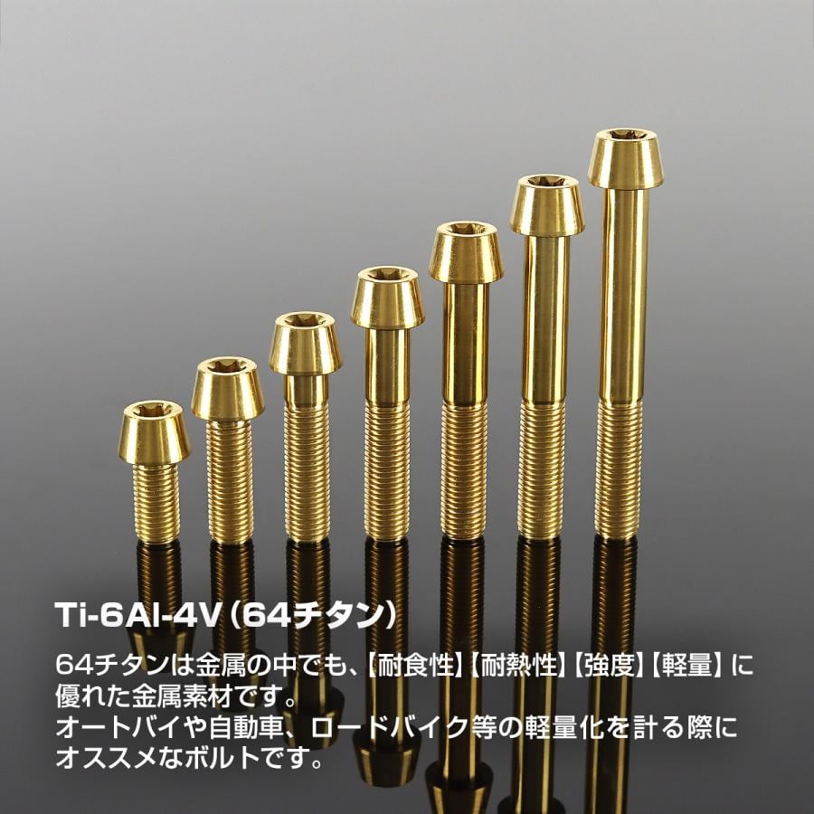 64チタンボルト M10×30mm P1.25 テーパーヘッド トルクス穴付き キャップボルト ゴールドカラー 1個 JA389