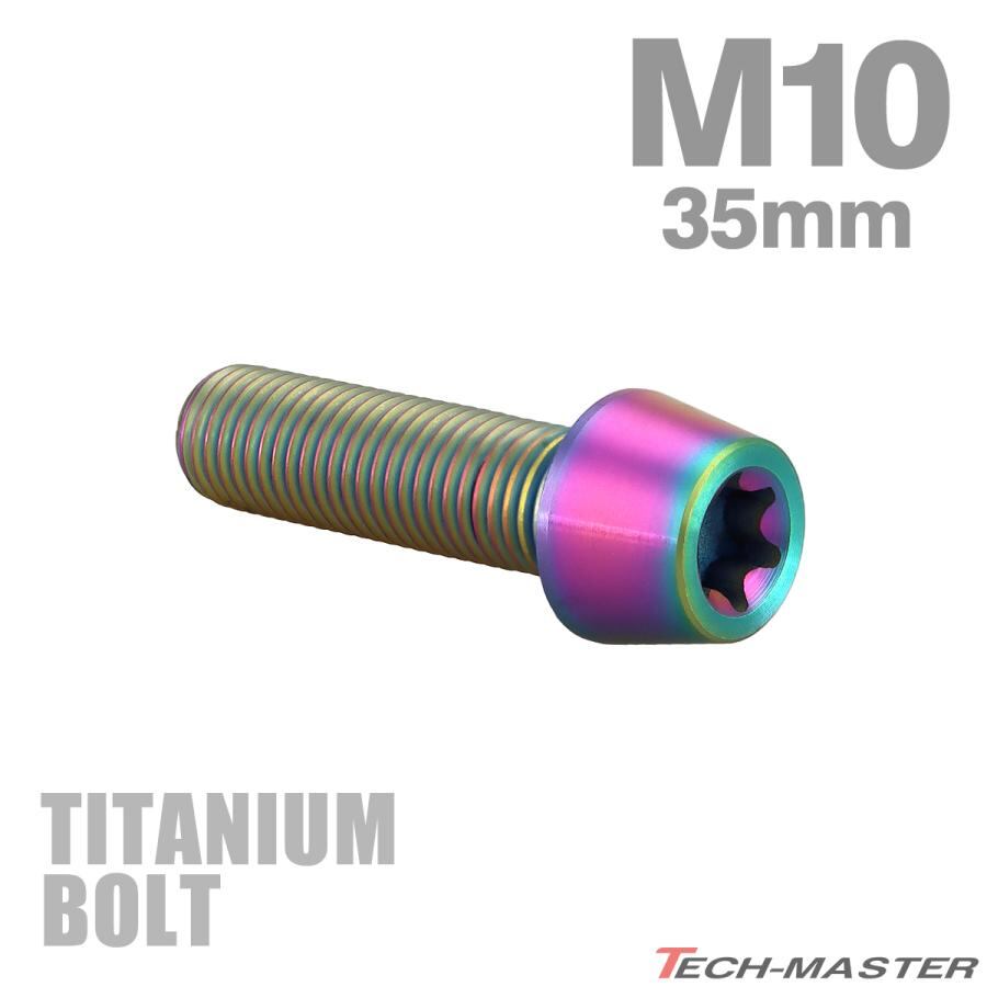 64チタンボルト M10×35mm P1.25 テーパーヘッド トルクス穴付き キャップボルト 焼きチタンカラー 虹色 1個 JA391