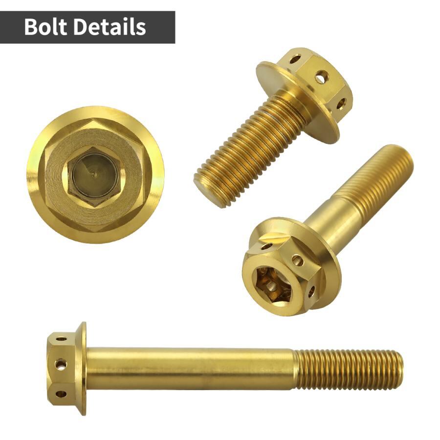 64チタンボルト M10×20mm P1.25 ホールヘッド 六角ボルト フランジ付き 六角ボルト ゴールドカラー 金色 1個 JA422