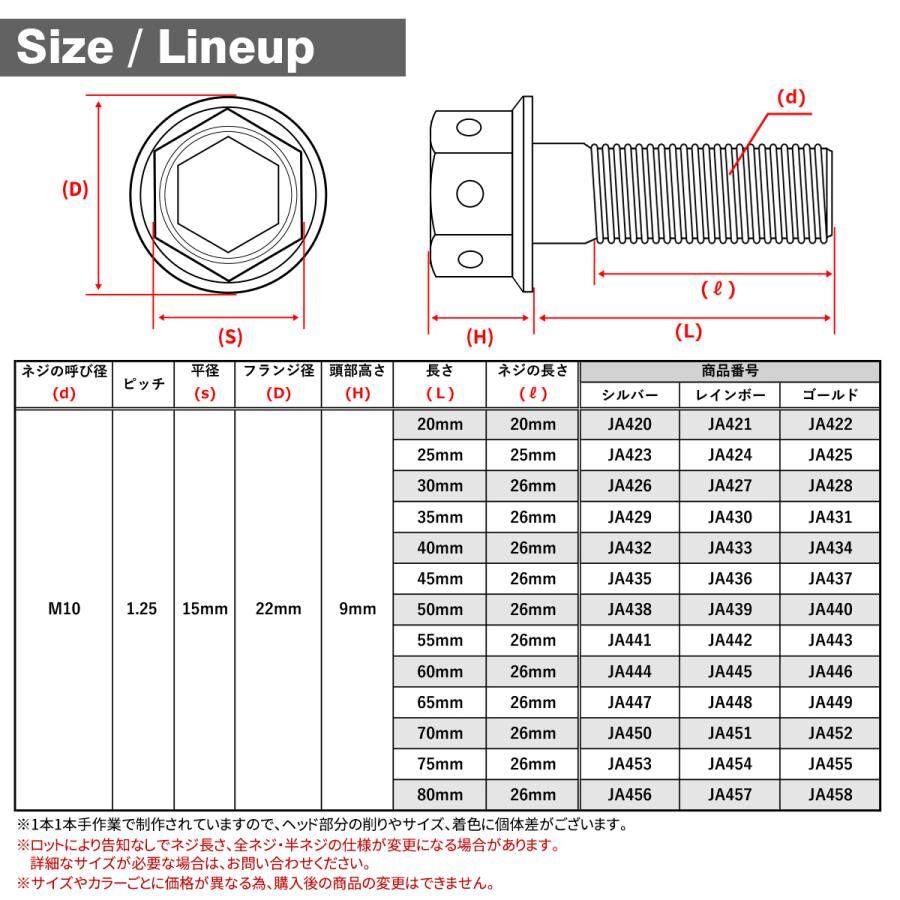 64チタンボルト M10×25mm P1.25 ホールヘッド 六角ボルト フランジ付き 六角ボルト ゴールドカラー 金色 1個 JA425