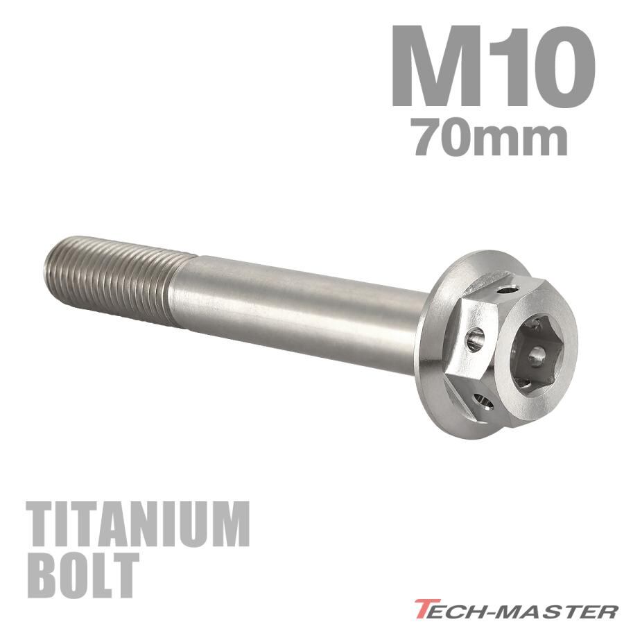 64チタンボルト M10×70mm P1.25 ホールヘッド 六角ボルト フランジ付き 六角ボルト シルバーカラー 素地 1個 JA450