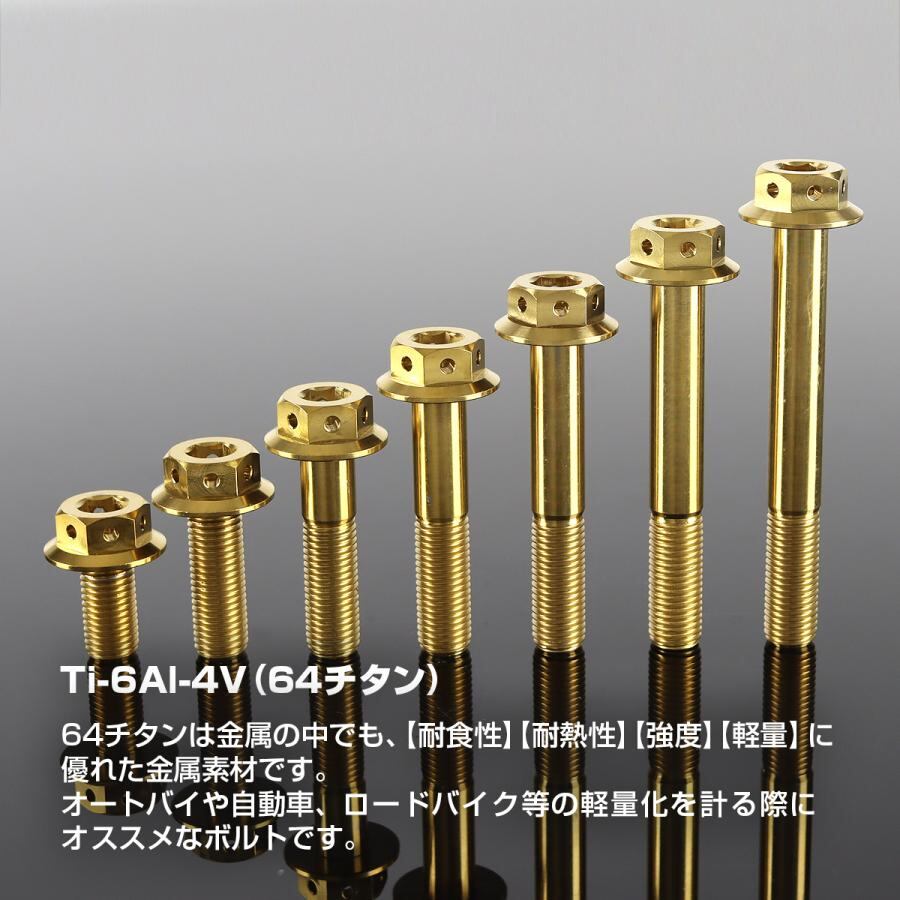 64チタンボルト M10×75mm P1.25 ホールヘッド 六角ボルト フランジ付き 六角ボルト ゴールドカラー 金色 1個 JA455