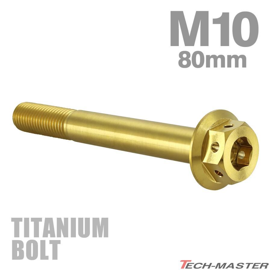 64チタンボルト M10×80mm P1.25 ホールヘッド 六角ボルト フランジ付き 六角ボルト ゴールドカラー 金色 1個 JA458