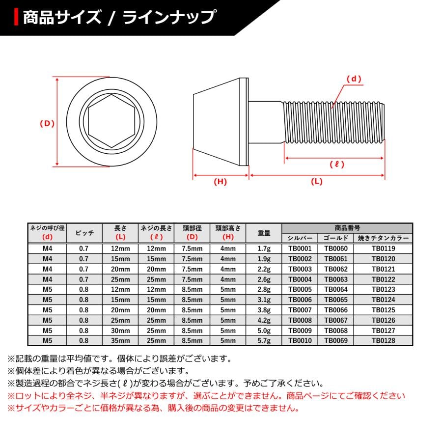 ステンレスボルト M5×25mm P0.8 テーパーヘッド キャップボルト 焼きチタンカラー TB0126