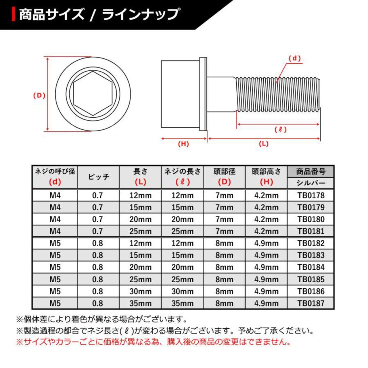 ※サイズやカラーごとに価格が異なる為、購入後の商品の変更はできません。