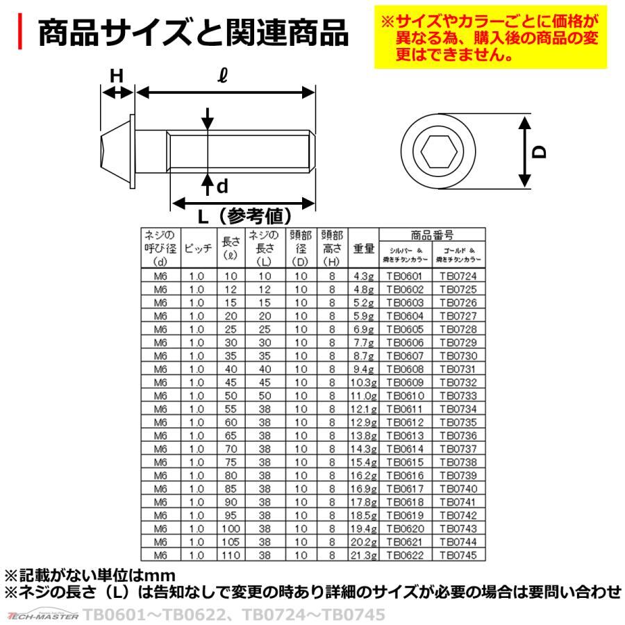 キャップボルト M6×90mm P1.0 テーパー ステンレス ゴールド&焼きチタンカラー 1個 TB0741