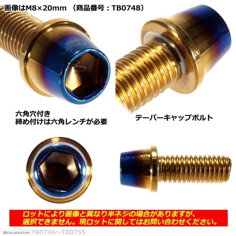 キャップボルト M8×45mm P1.25 テーパー ステンレス ゴールド&焼きチタンカラー 1個 TB0753
