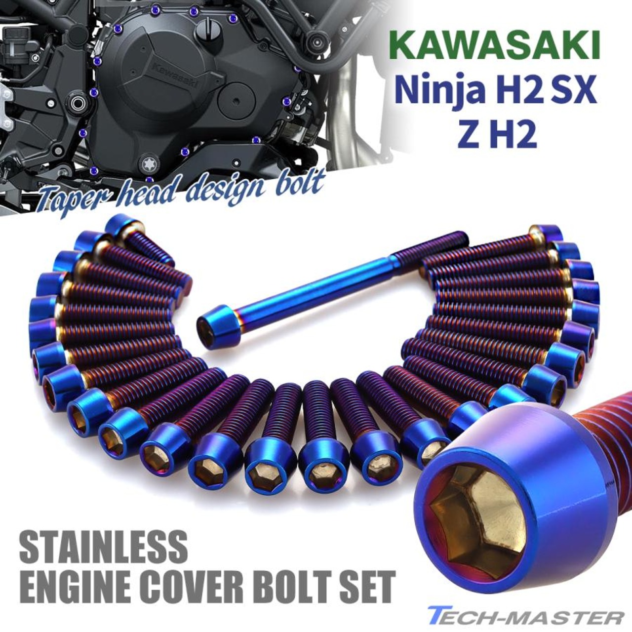 Z H2/Ninja H2 SX/H2 SX SE/H2 SX SE+ エンジンカバー クランクケース ボルト 27本セット ステンレス製 焼きチタンカラー TB8910