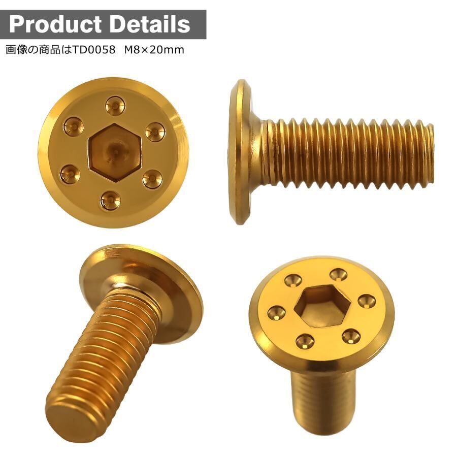 ブレーキディスク ローターボルト M8×20mm P1.25 ヤマハ用 シンホールヘッド ゴールドカラー TD0058