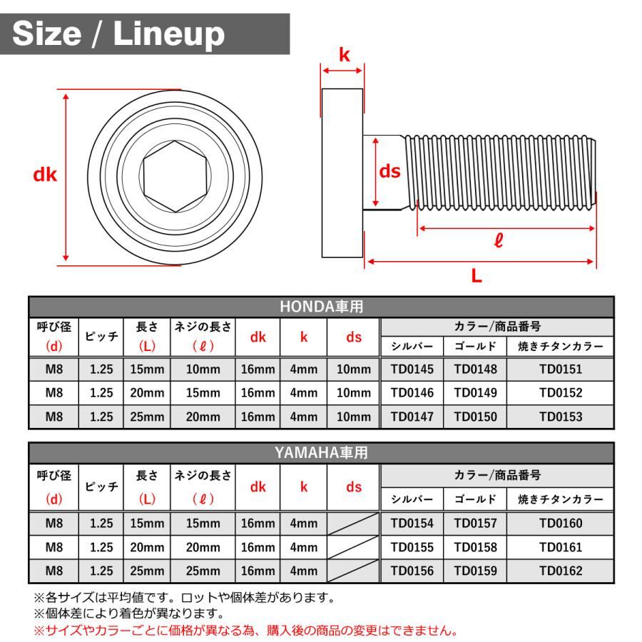 ブレーキディスク ローターボルト M8×25mm P1.25 ヤマハ用 デザインヘッド シルバーカラー TD0156