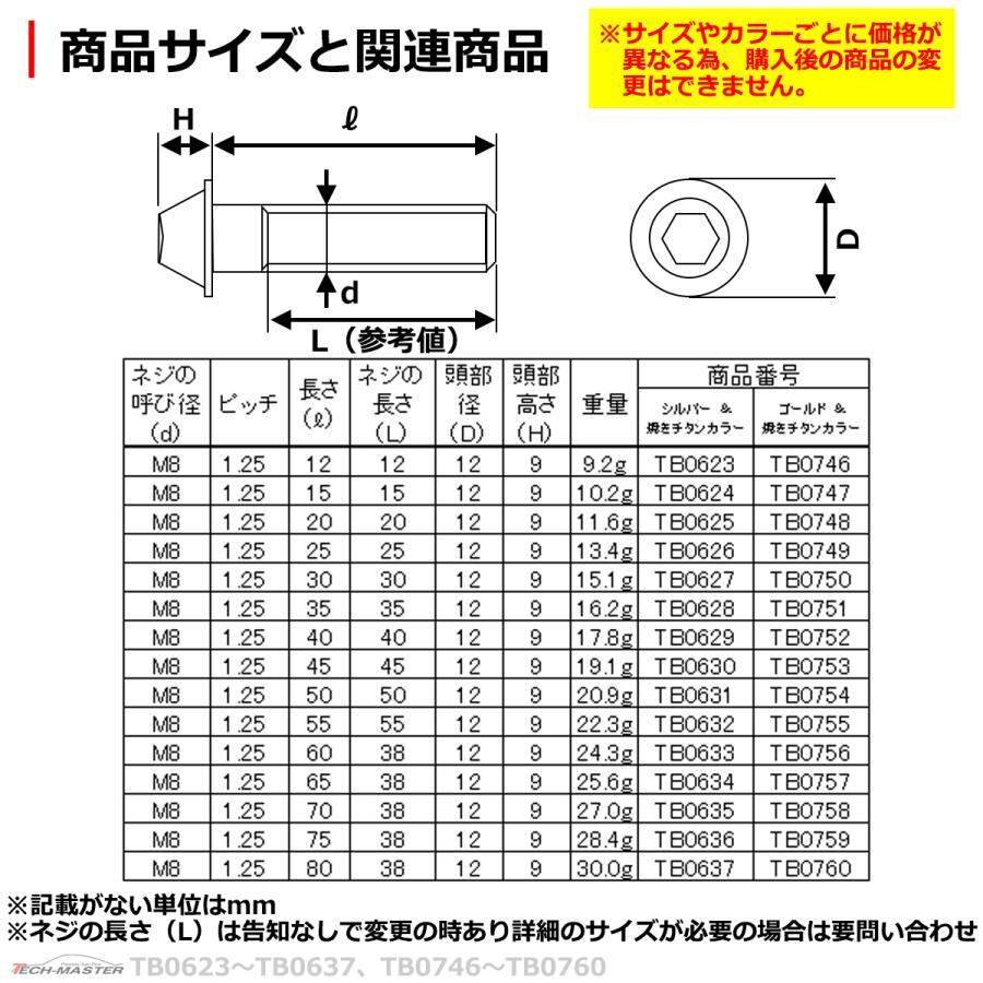 キャップボルト M8×15mm P1.25 テーパー ステンレス シルバー&焼きチタンカラー 1個 TB0624