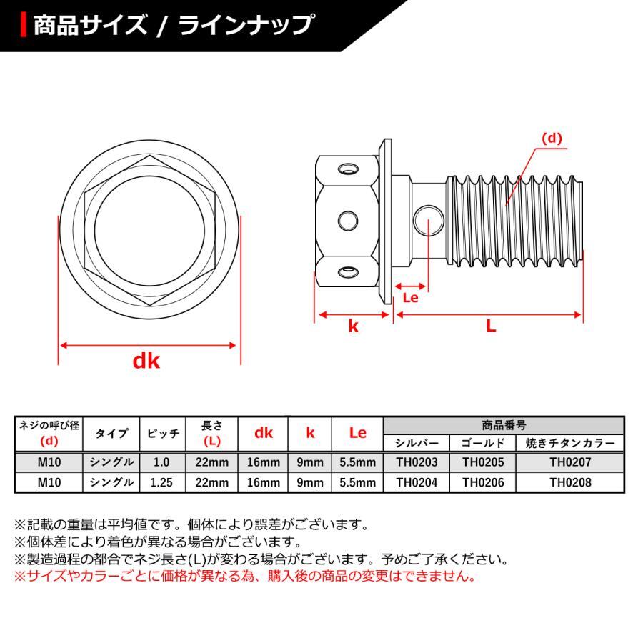 バンジョーボルト シングル M10 P1.0 ステンレス製 ヘキサゴンヘッド シルバーカラー 1個 TH0203