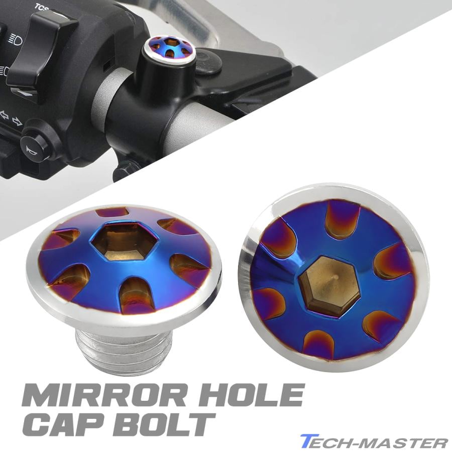 ミラーホールキャップ 正ネジ M10×10mm P1.25 2個セット ホンダ車用 デザインヘッド シルバー×ブルー TH0127