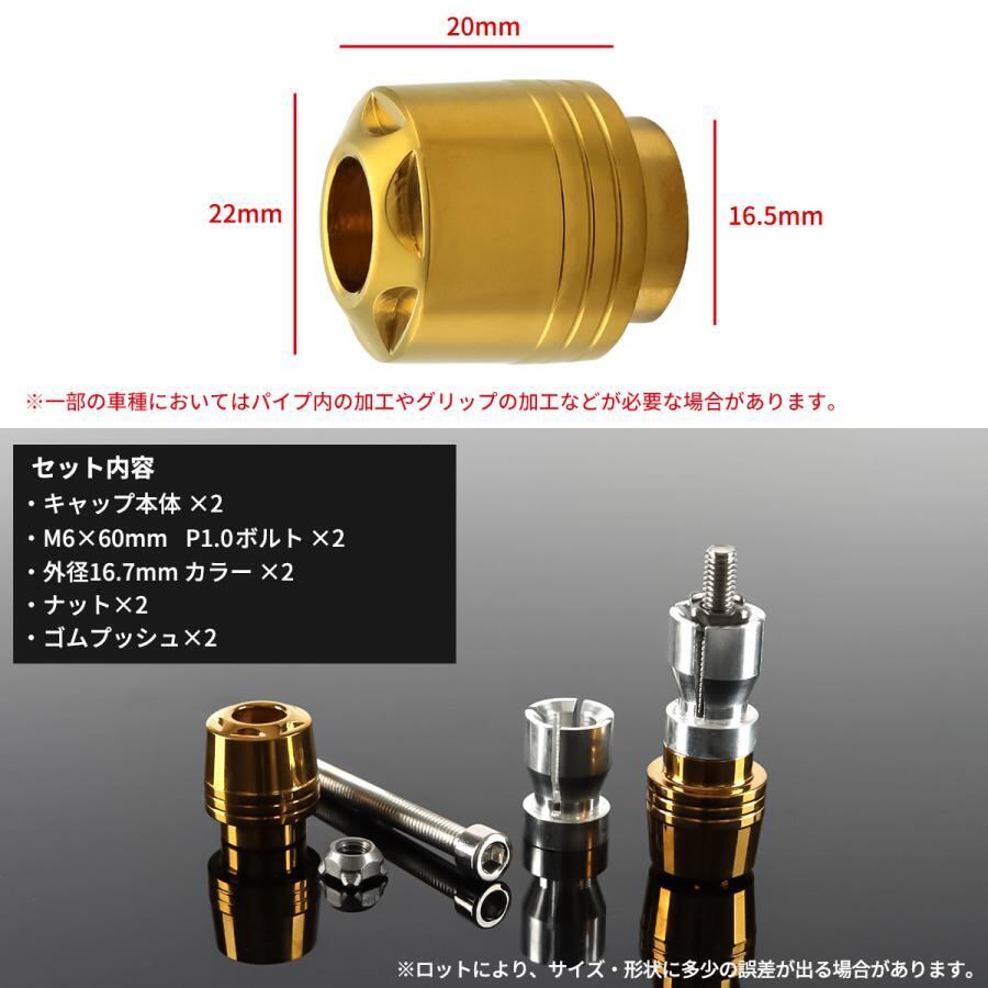 バイク バーエンド キャップ ステンレス グリップエンド ロングスターヘッド ゴールド 左右セット TH0441