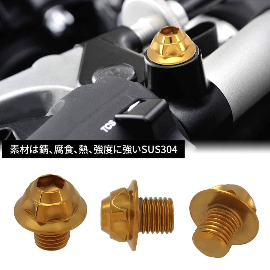 ミラーホールキャップ 正ネジ 逆ネジ M10×10mm P1.25 2個セット ヤマハ車用 デザインヘッド ゴールド TH0654