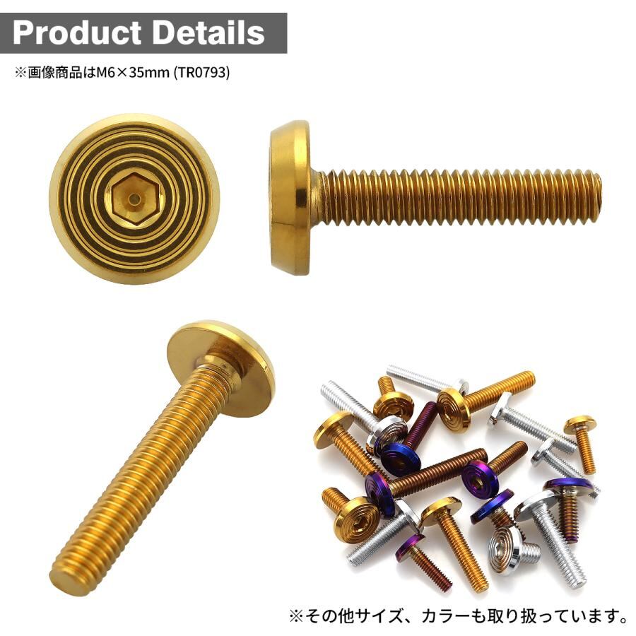 ステンレスボルト M6×30mm P1.0 シェルヘッド フラット ゴールドカラー TR0792