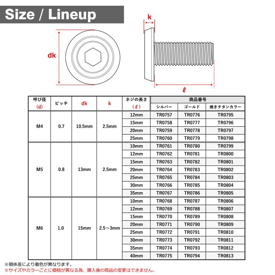 ステンレスボルト M4×12mm P0.7 シェルヘッド フラット 焼きチタンカラー TR0795