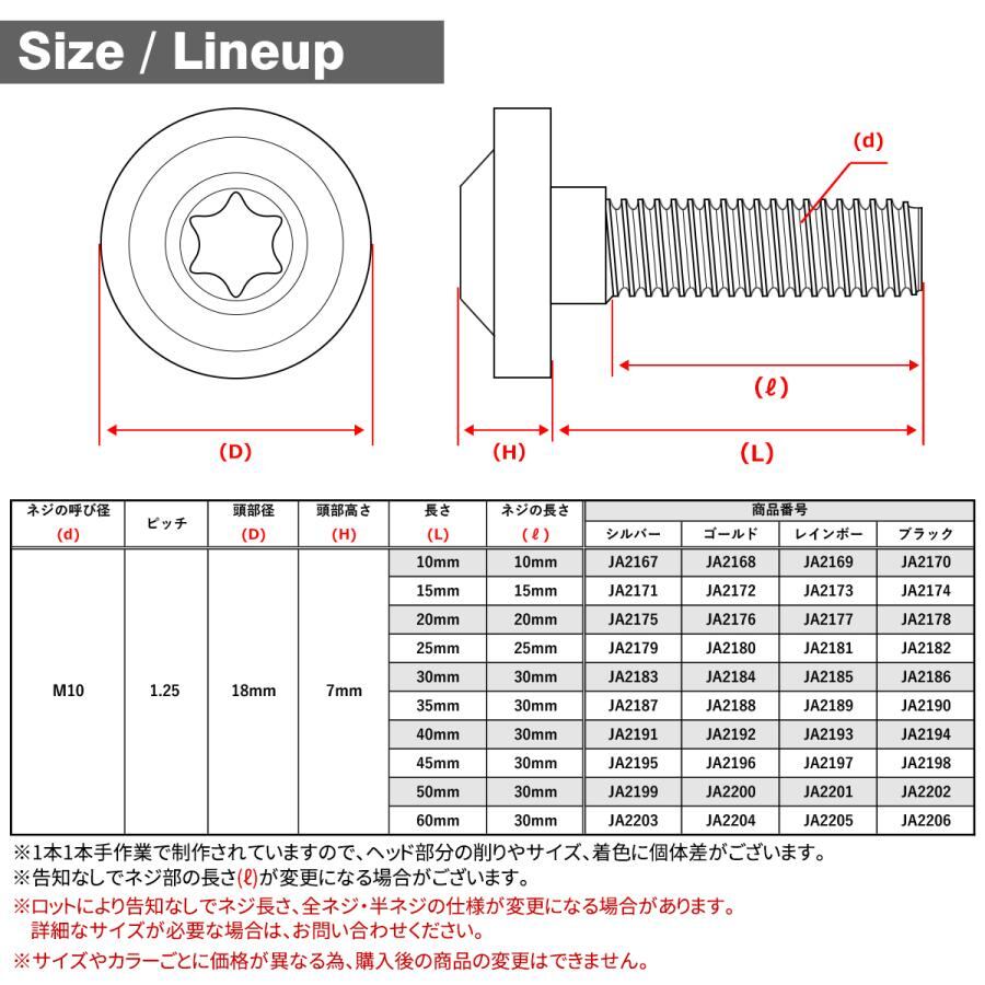 チタンボルト M10×35mm P1.25 トルクス穴 フランジ付き ボタンボルト チタンカラー ブラック 1個 JA2190