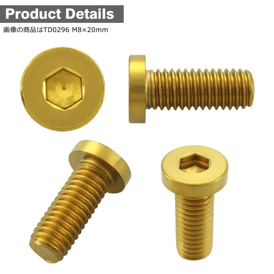 ブレーキディスク ローターボルト M8×20mm P1.25 ヤマハ用 フラットヘッド小 ステンレス ゴールドカラー TD0296