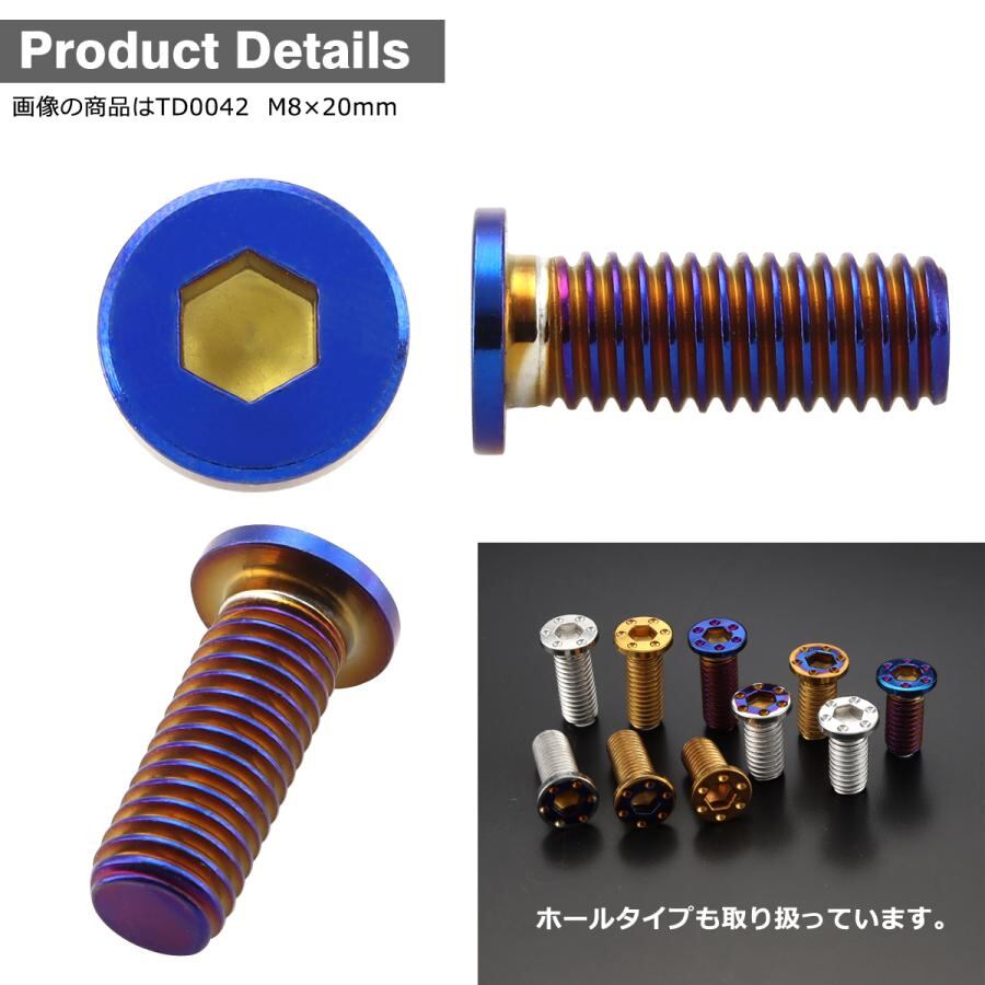 ブレーキディスク ローターボルト M8×25mm P1.25 ヤマハ用 ミニフラット ホールヘッド ステンレス 焼きチタンカラー TD0382